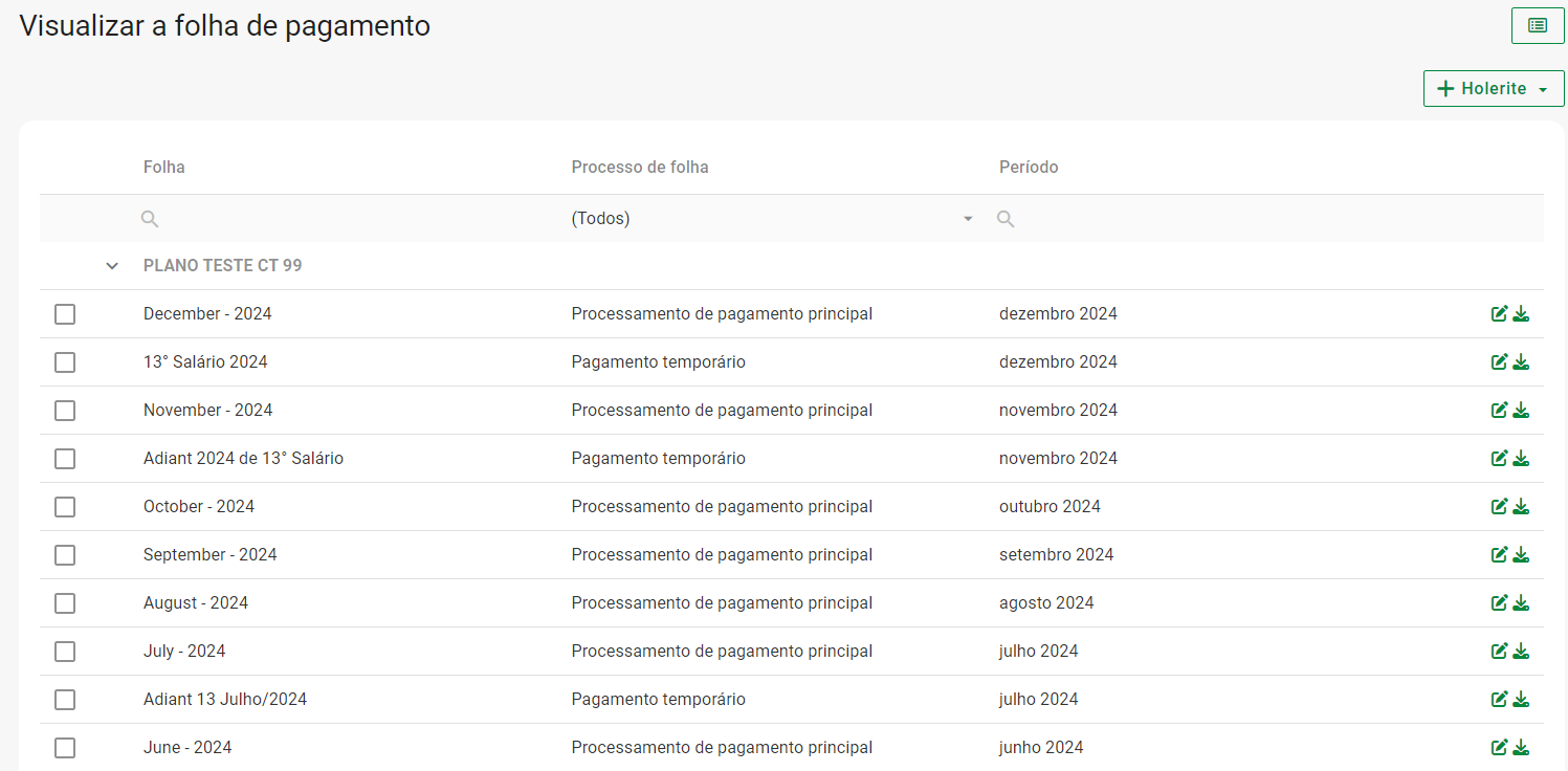 Navegar > Processamento de Folha de Pagamento > Editar Holerite