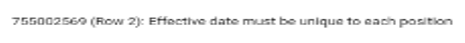 O erro "A data efetiva deve ser exclusiva para cada posição" será exibido ao atualizar a posição dos funcionários sem uma nova data efetiva por meio da tela Ações em massa .