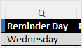 Verifique se o campo Dia do Lembrete foi preenchido com um número, por exemplo 9, para indicar o dia 9 de agosto na planilha de modelo do MS Excel para indicar em qual dia o lembrete deve ocorrer.