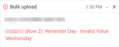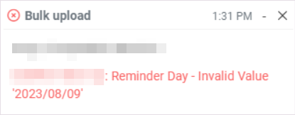 O erro será exibido se o dia do lembrete tiver sido concluído da seguinte forma, em vez de um valor numérico ser inserido.