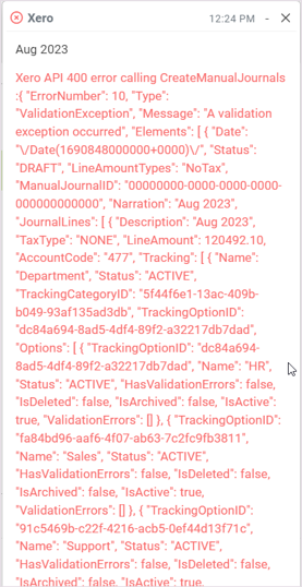 O "erro Xero API 400" será exibido quando o diário lançado no Xero não for balanceado e o total de débitos não for igual ao total de créditos.