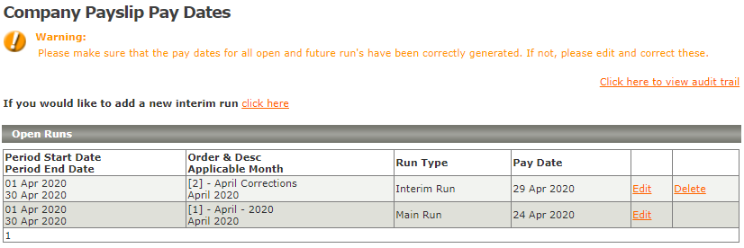 As folhas intermediárias permitem que você crie folhas adicionais dentro do mesmo período de processamento. As folhas intermediárias são criadas a partir da tela Datas de pagamento do recibo de vencimento da empresa.