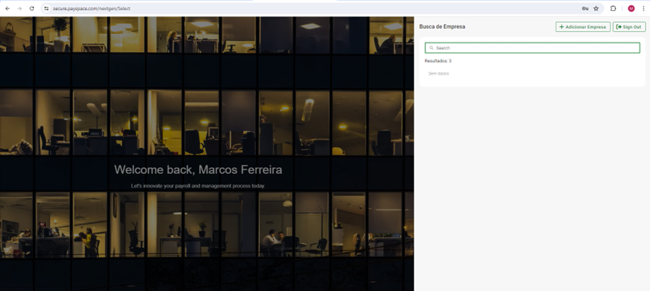 Escolha a empresa que deseja acessar na tela de seleção.