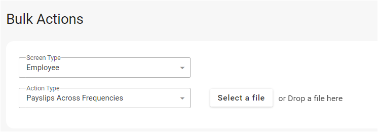 Foi lançado um novo recurso que permite que valores de contracheque sejam importados para funcionários em várias frequências. O novo Tipo de Ação Bulk Actions está disponível no menu suspenso Tipo de Ação .