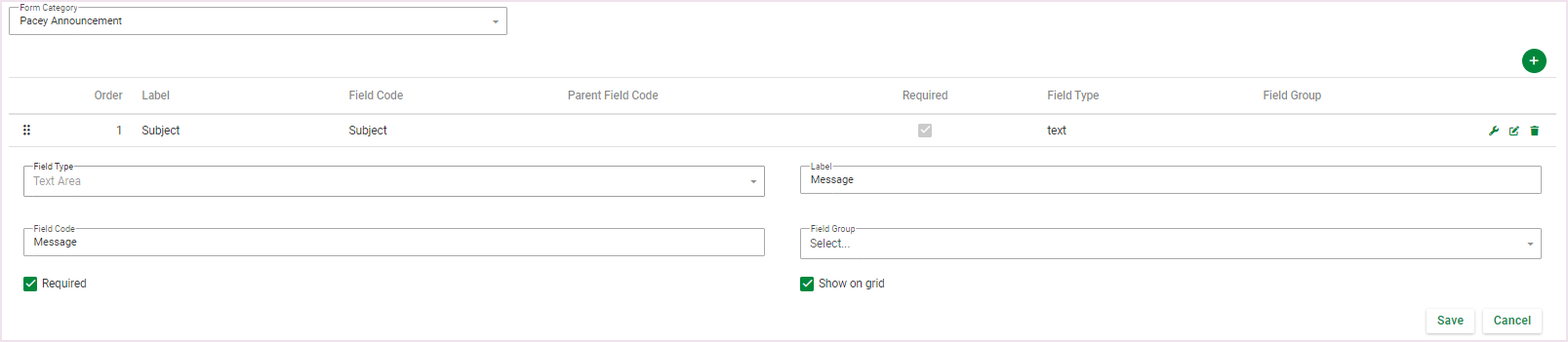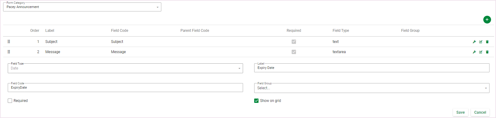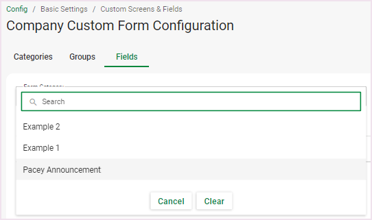 Passo 2: Clique na guia "Campos" e selecione a opção "Anúncio do Pacey" recém-adicionada na lista suspensa Categoria do formulário.