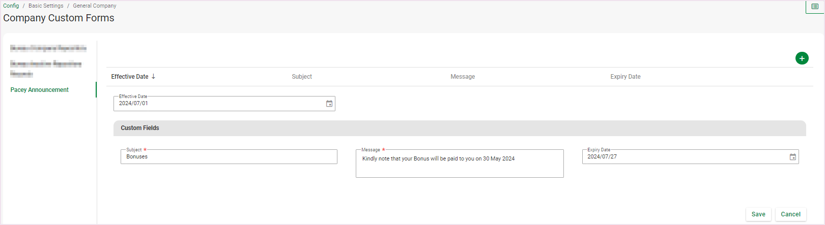 Para utilizar esse recurso, os clientes precisam criar um formulário personalizado no PaySpace, onde possam capturar a mensagem que desejam que os funcionários recebam.
