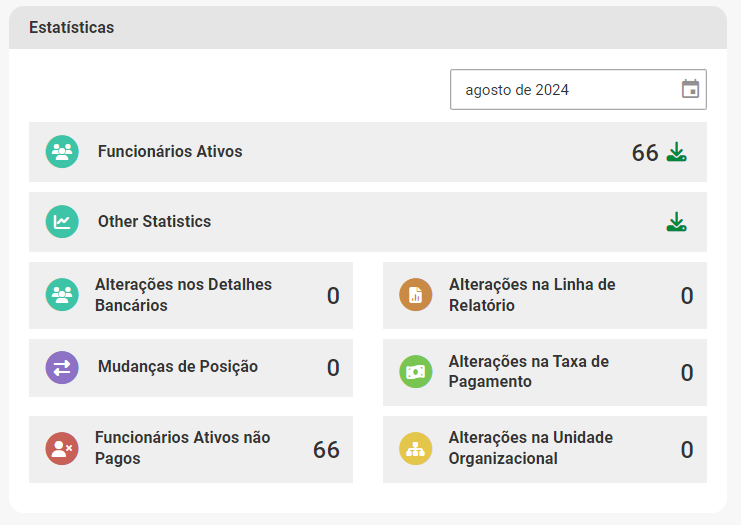 Funcionários Ativos não Pagos: Este dado sugere que, até o momento da consulta, nenhum dos funcionários ativos foi pago no mês de agosto.