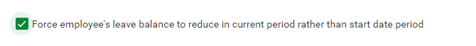 Os pedidos de licença com data futura reduzirão o saldo de férias do período de licença atual quando a caixa de seleção "Forçar o saldo de férias do funcionário a reduzir no período atual em vez do período de data de início." na seção Cálculo de Licença na tela Configurações de Licença estiver ativada.