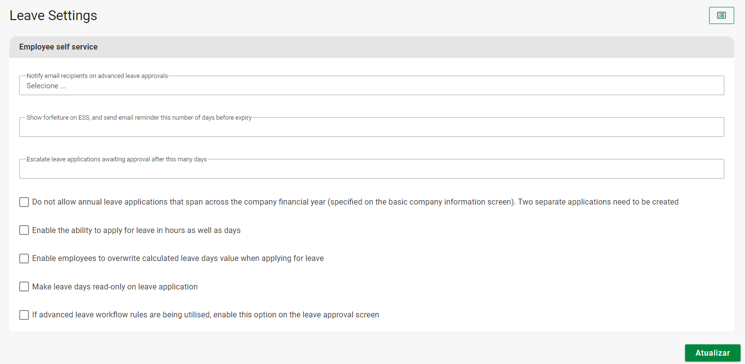 Com essa opção, os funcionários podem modificar o número de dias de licença calculados pelo sistema.